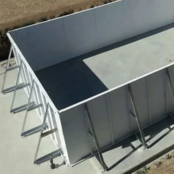 • Kit struttura piscina: fornitura di pannelli di acciaio (spessore 2mm) e contrafforti. La struttura autoportante della vasca è in acciaio tipo S235 ZM 275 sul quale viene applicato un rivestimento costituito da alluminio (55%), zinco (43%) e silicio (1,6%) per immersione a caldo in continuo. Ciò li caratterizza in una eccellente resistenza alla corrosione. Completi di supporti laterali di rinforzo avvitati mediante bulloneria zincata, M13x30 TE uni 5739 Din 933, 8.8 (+ dadi e rondelle zincate). La struttura è coperta da una garanzia di 10 anni da parte dell’azienda produttrice.